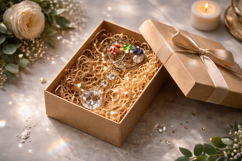 We create handcrafted crystal pieces designed to catch sunlight and turn it into moments of calm, warmth, and quiet beauty for your home.